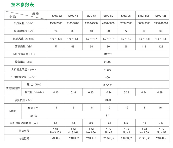 SMC型脈沖除塵器是吸收國內(nèi)外同類產(chǎn)品經(jīng)改進(jìn)后設(shè)計(jì)而成的小型袋式除塵器。除塵器采用脈沖逐行噴吹的清灰方式,具有清灰效果好、凈化效率高、濾袋壽命長、維修工作量小、運(yùn)行安全可靠的優(yōu)點(diǎn)。廣泛用于冶金、建材、機(jī)械、化工、礦山等各種工礦企業(yè)非纖維工業(yè)粉塵的除塵凈化與物料的回收,主要應(yīng)用于碼頭、輸送、倉儲等散點(diǎn)收塵。本系列除塵器共有七個(gè)規(guī)格,其結(jié)構(gòu)主要由過濾室、濾袋、凈氣室、灰斗、卸灰裝置、脈沖噴吹清灰裝置、電控箱等組成,箱體全部采用焊接結(jié)構(gòu)。檢修門采用密封結(jié)構(gòu)。公司還生產(chǎn)SMD等系列單機(jī)脈沖袋式除塵器。